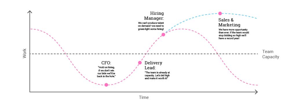 It’s a tough balancing act to bring in enough new business to hit targets, have just the right amount of talent on staff to deliver great results, and keep teams happy and engaged. And oscillating between the ebbs and flows of selling – and profitably delivering – digital services can become tense and messy when people are the product. It leads to reactive decision-making driven by emotion and instinct. We get it, and it’s a tension we see in services companies every day.