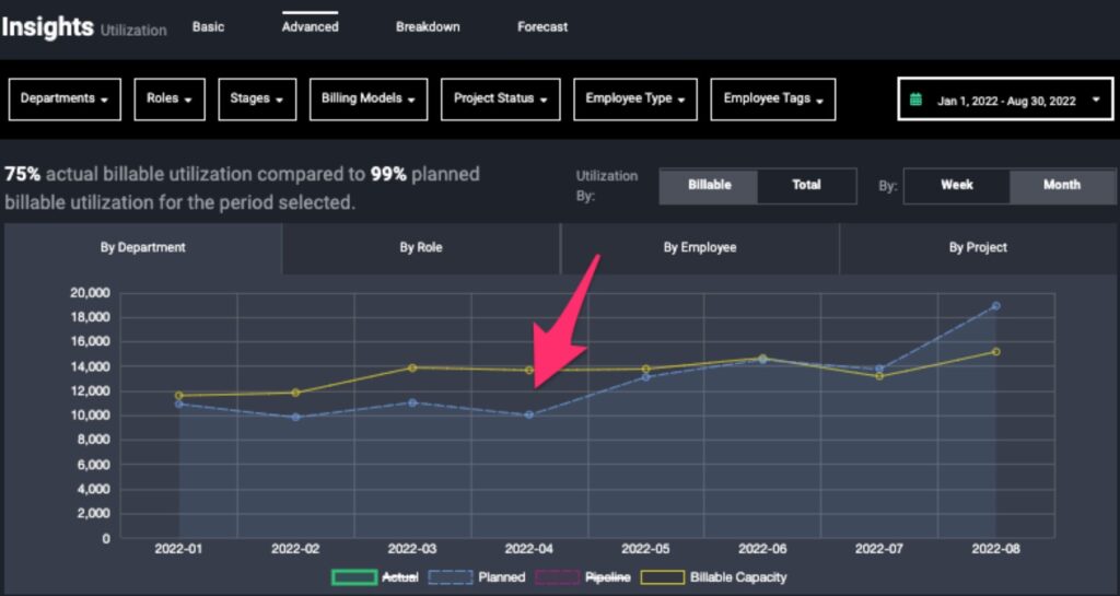 Every organization is tasked with optimizing and stabilizing utilization. While pushing utilization higher and higher may seem great from a financial perspective, it is likely to result in team burnout and isn’t sustainable over time. When utilization drops too low, it means the team is losing out on additional revenue opportunity, which limits organizations from maximizing their financial potential. Having a clear view of utilization is important – in fact, it’s critical – to moving up the maturity model from a heroic organization to a strategic business.