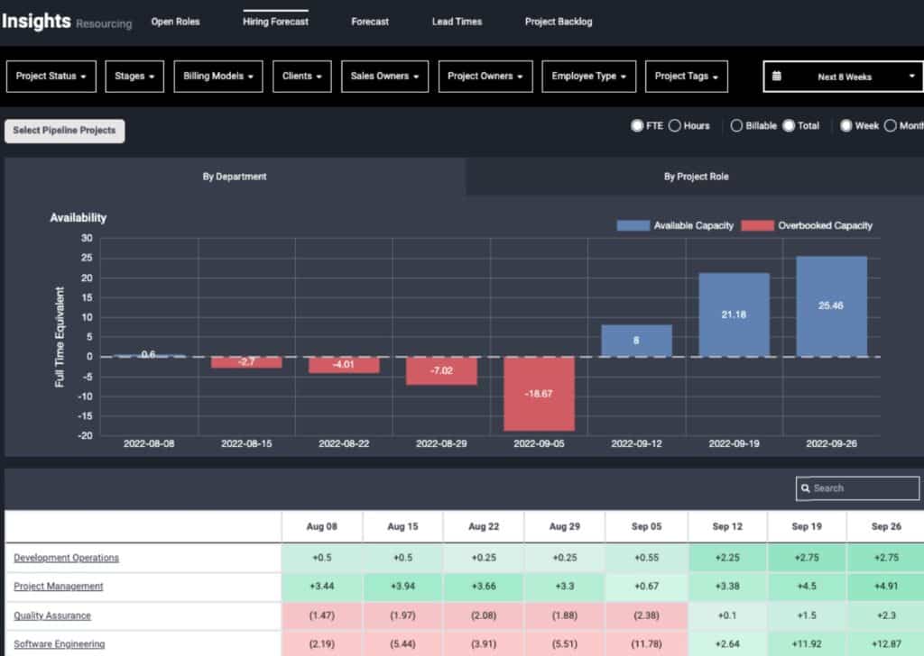 Build more rigor into the sales and resource planning process: Data from CRM platforms, or resource and staffing plans, often exists in silos. A consequence of this locked-up data is that sales teams seldom have visibility into the project backlog which impacts when and how the work they’re selling can be delivered. Delivery teams, on the other hand, lack visibility into the sales pipeline and struggle to balance workloads and make data-driven staffing decisions.