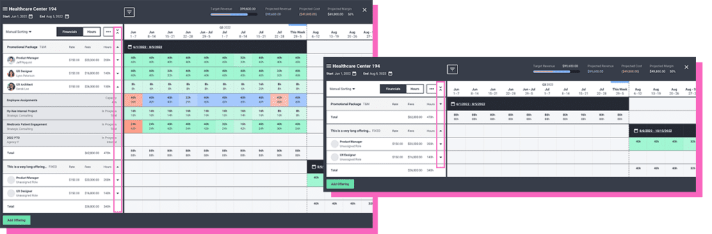 Expand/Collapse Offerings: We all covet more screen real estate, so we made it easy to expand and collapse information within the service offering view in Project Shaper. Users can filter out irrelevant information – say details from the discovery phase that’s now complete – so they can only see and focus on what matters at that moment.